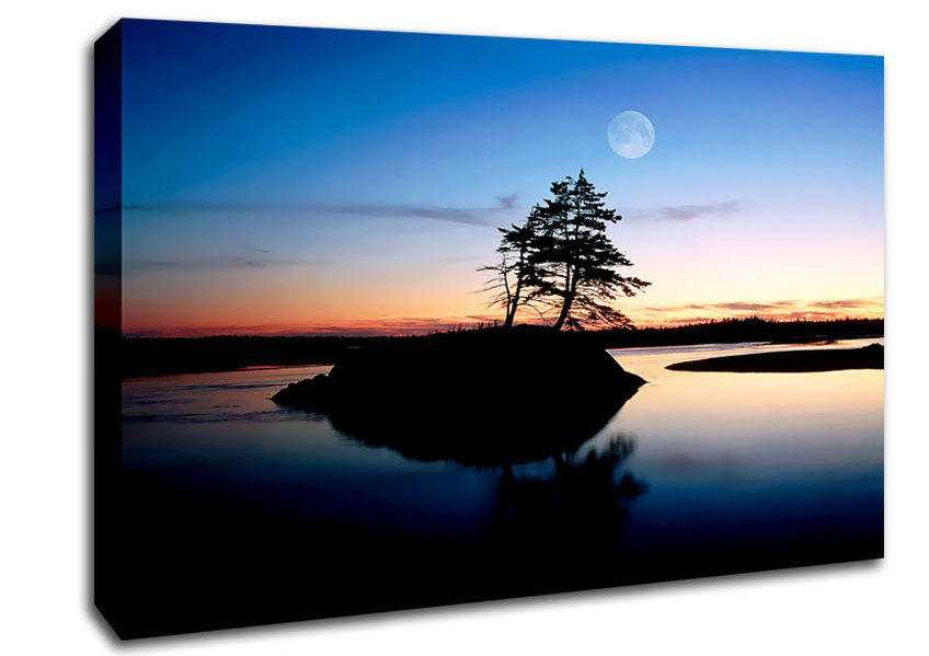 Blue Paradise Island Canvas Print handmade in the UK. Stretched over a 2 inch thick wooden box frame, ready to hang on your wall.