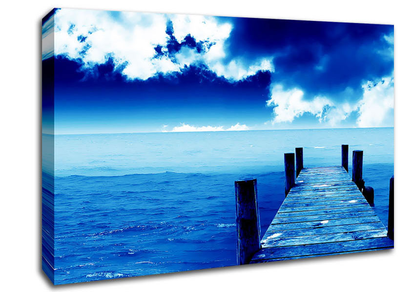 Boardwalk Ocean Blues Canvas Print handmade in the UK. Stretched over a 2 inch thick wooden box frame, ready to hang on your wall.