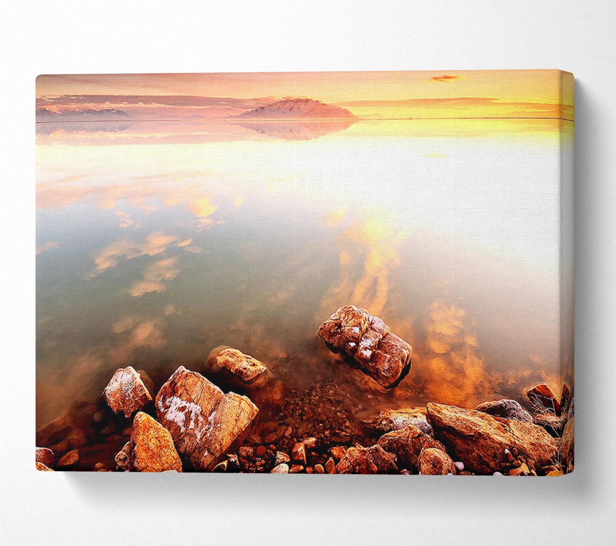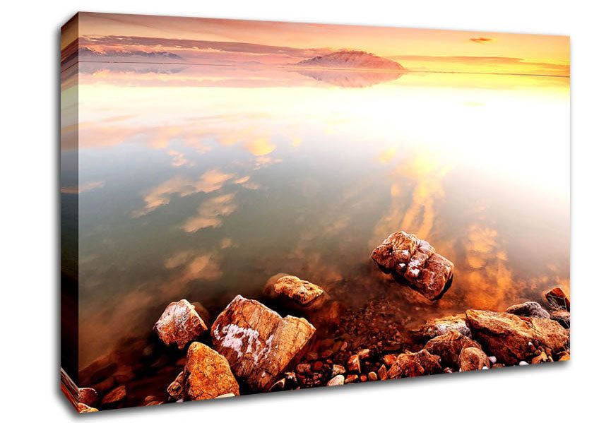 Calm Lake Wonder Canvas Print handmade in the UK. Stretched over a 2 inch thick wooden box frame, ready to hang on your wall.
