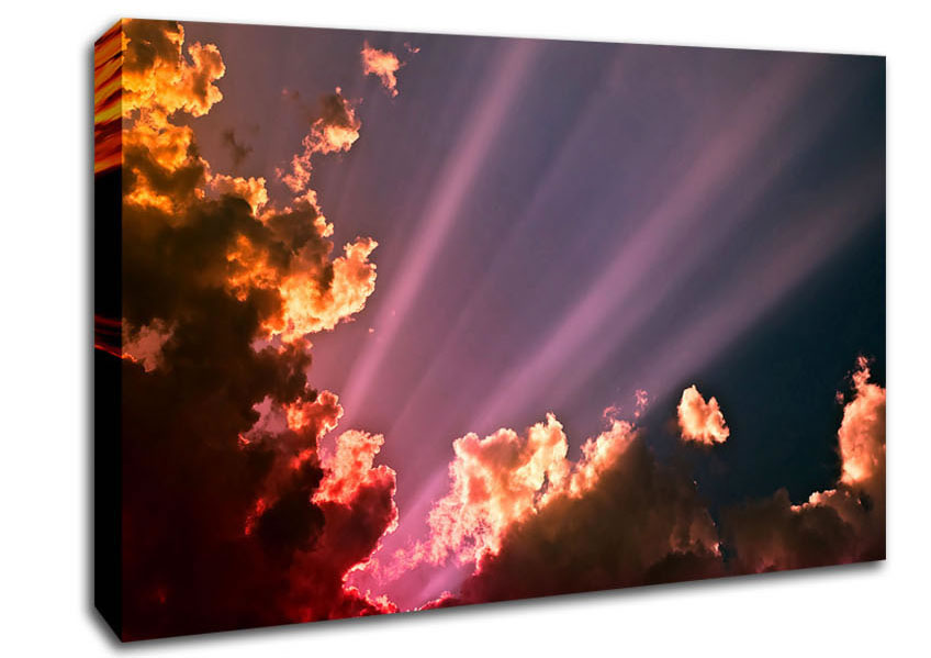 Colourful Clouds Above The Ocean Canvas Print handmade in the UK. Stretched over a 2 inch thick wooden box frame, ready to hang on your wall.