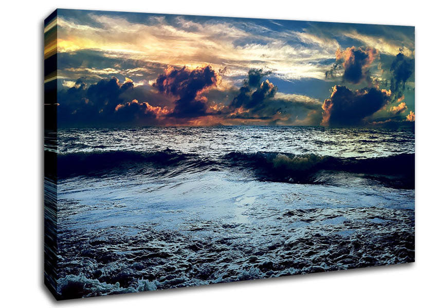 Dark Blue Sea Canvas Print handmade in the UK. Stretched over a 2 inch thick wooden box frame, ready to hang on your wall.