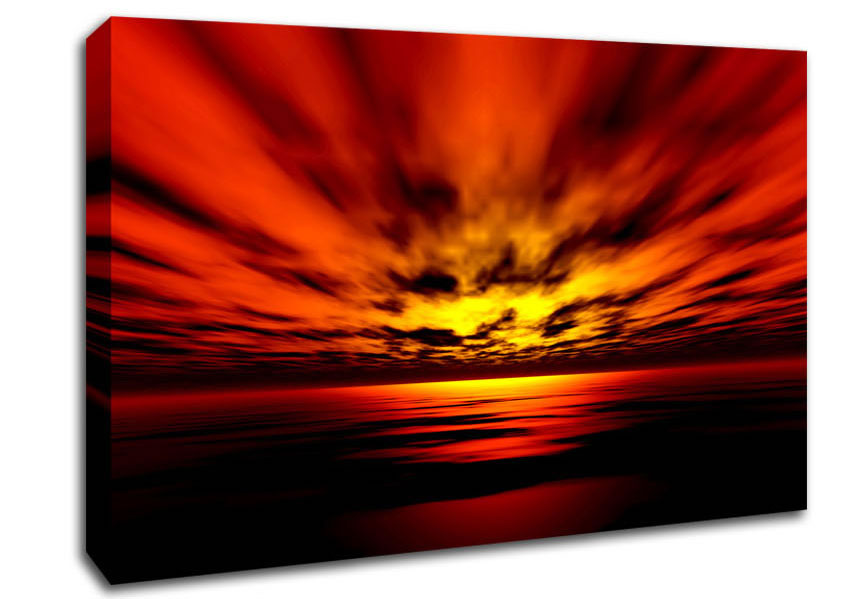 Fire Red Sun Blaze Canvas Print handmade in the UK. Stretched over a 2 inch thick wooden box frame, ready to hang on your wall.