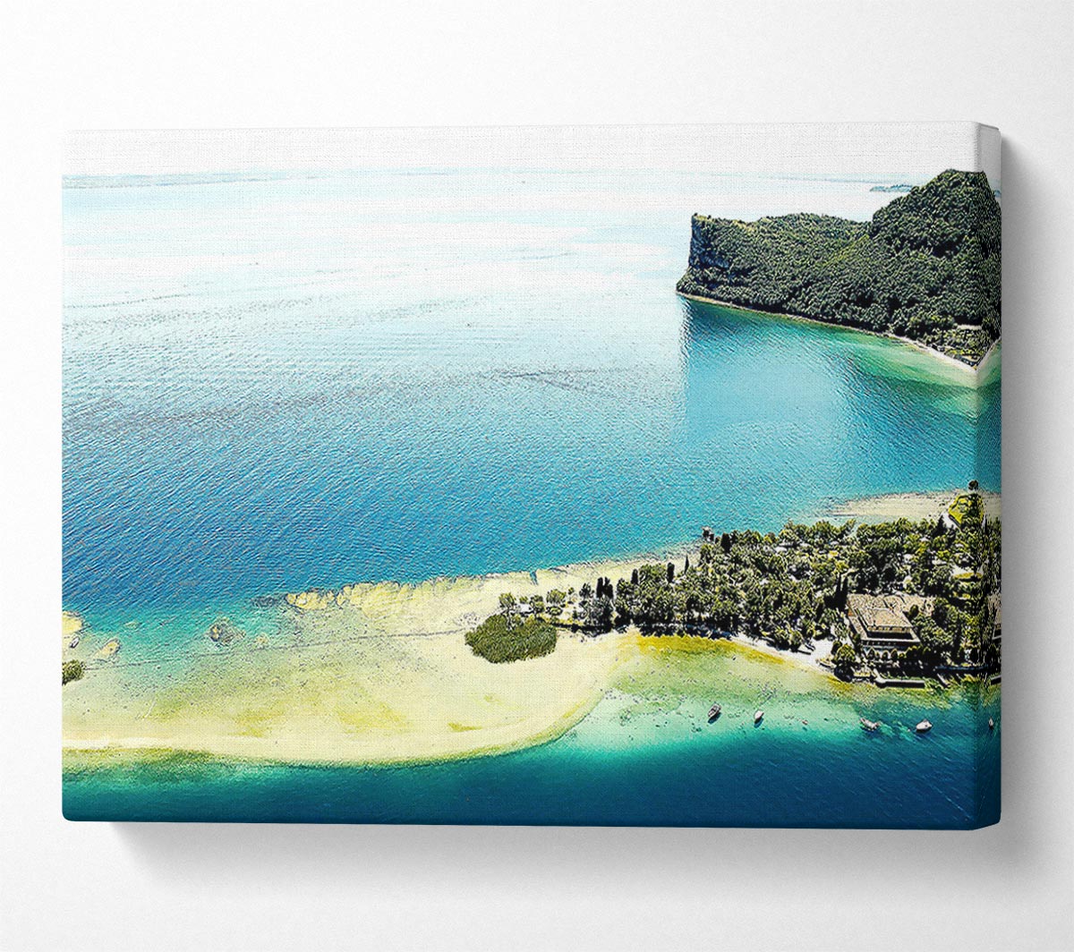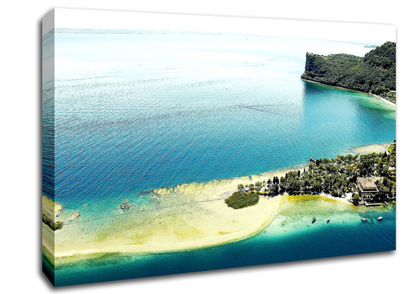 Garda Lake Italy Canvas Print handmade in the UK. Stretched over a 2 inch thick wooden box frame, ready to hang on your wall.