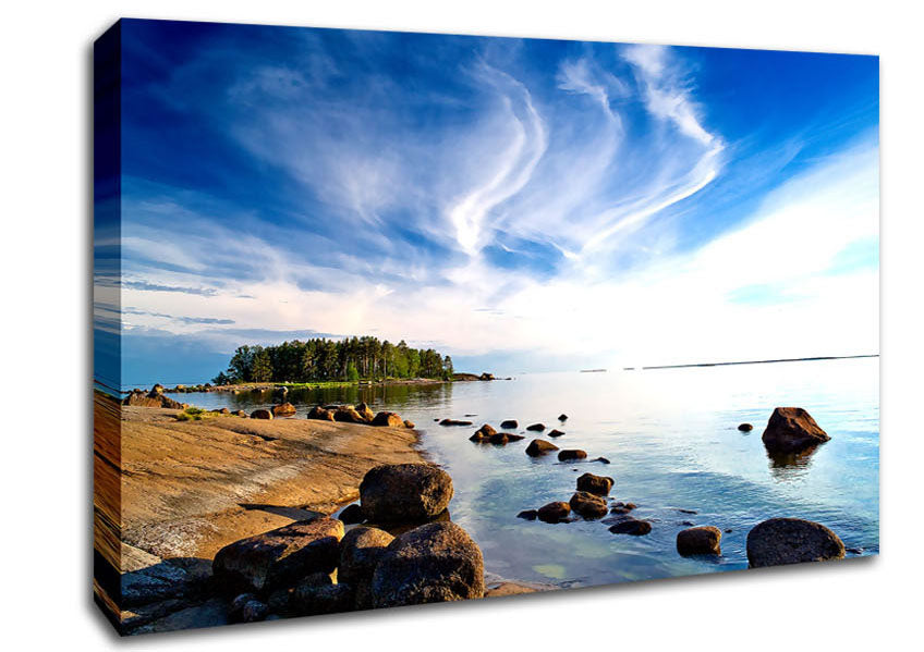 Island Of Rakin Kotka Canvas Print handmade in the UK. Stretched over a 2 inch thick wooden box frame, ready to hang on your wall.