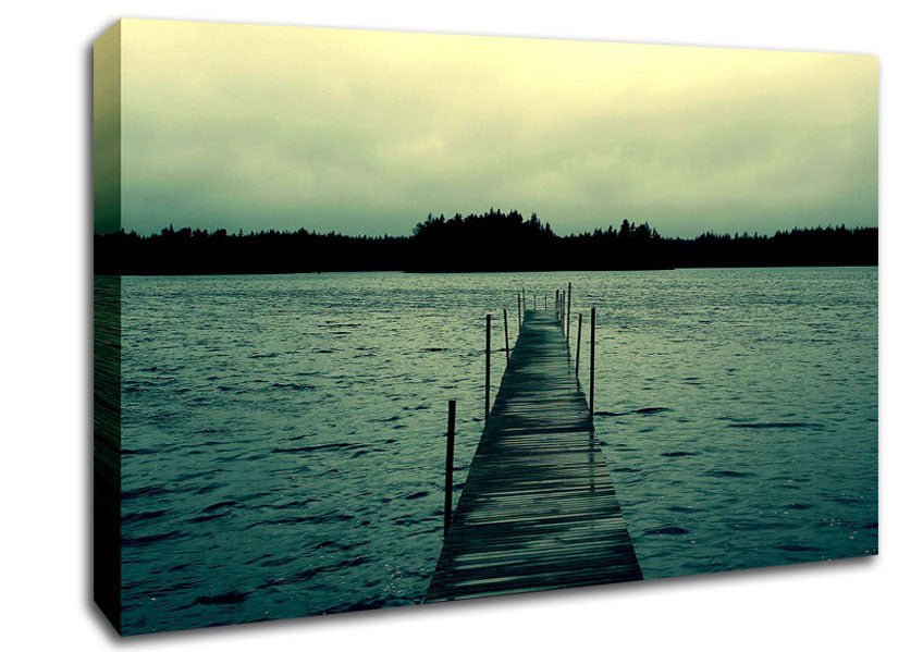 Long Green Jetty Canvas Print handmade in the UK. Stretched over a 2 inch thick wooden box frame, ready to hang on your wall.