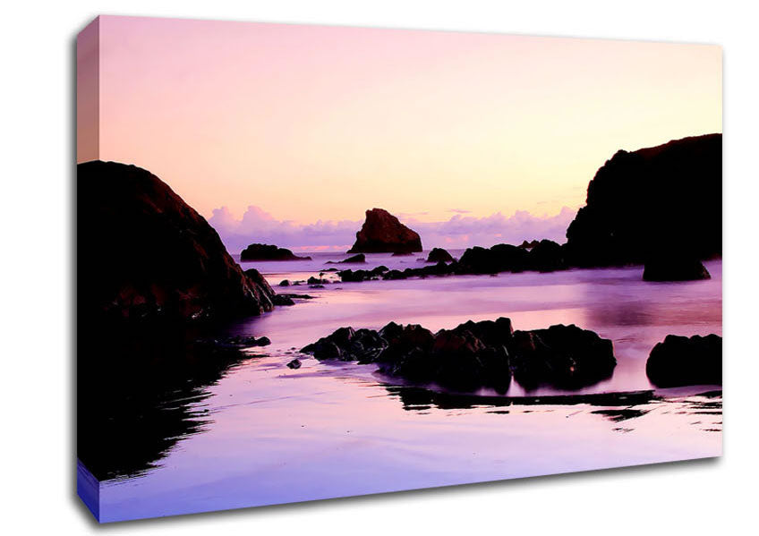 Mystical Lilac Ocean Canvas Print handmade in the UK. Stretched over a 2 inch thick wooden box frame, ready to hang on your wall.