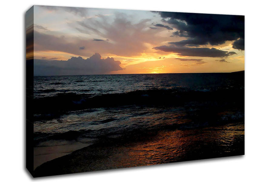 Ocean Sunset Clouds Canvas Print handmade in the UK. Stretched over a 2 inch thick wooden box frame, ready to hang on your wall.