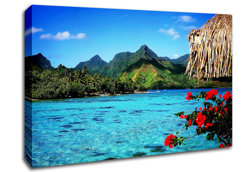 Paradise Island Bay Canvas Print handmade in the UK. Stretched over a 2 inch thick wooden box frame, ready to hang on your wall.