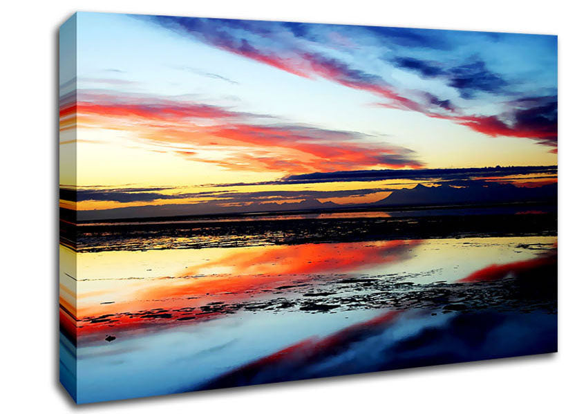 Rainbow Ocean Skies Blue Canvas Print handmade in the UK. Stretched over a 2 inch thick wooden box frame, ready to hang on your wall.
