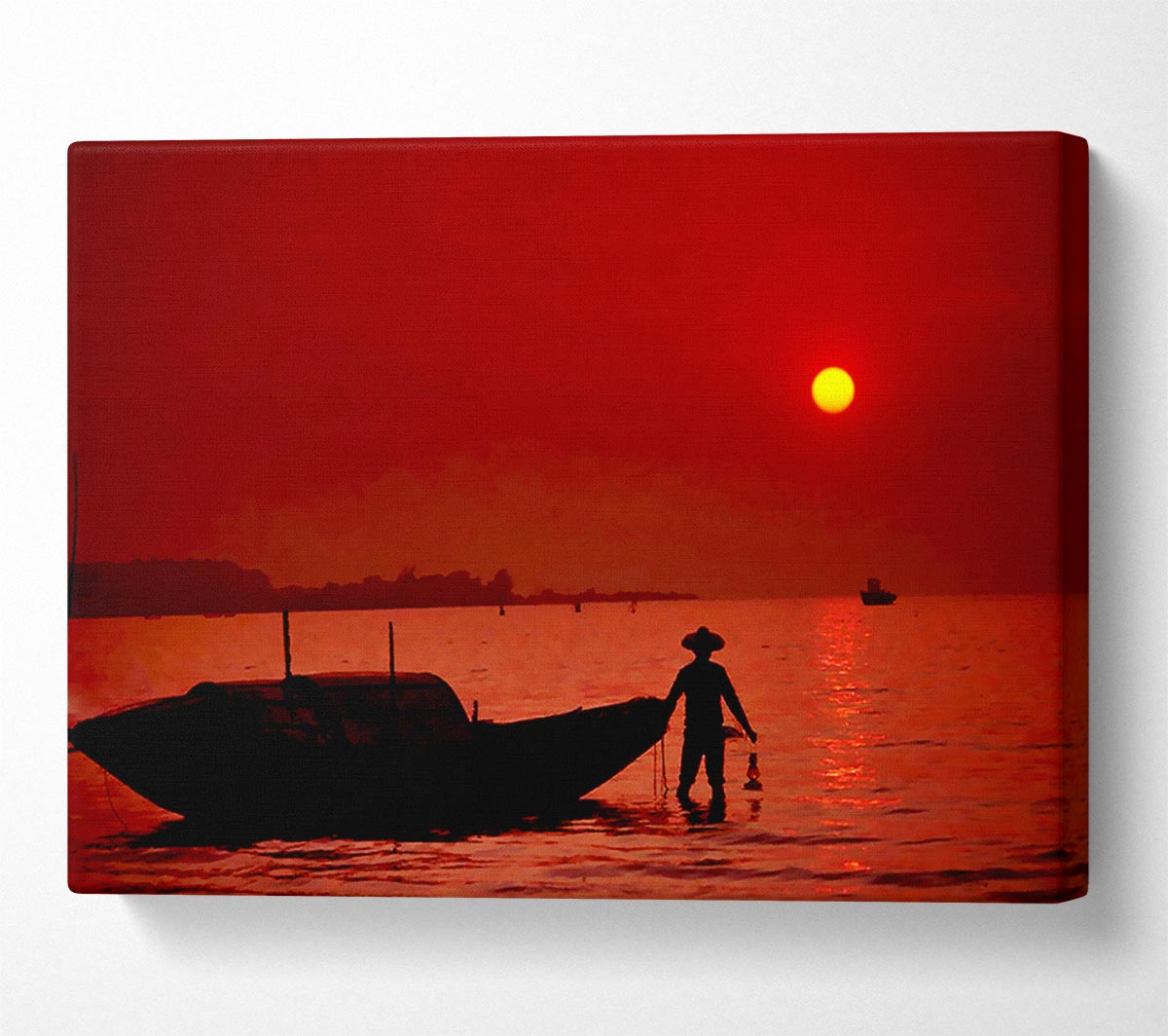 Red Fisherman Canvas Print handmade in the UK. Stretched over a 2 inch thick wooden box frame, ready to hang on your wall.
