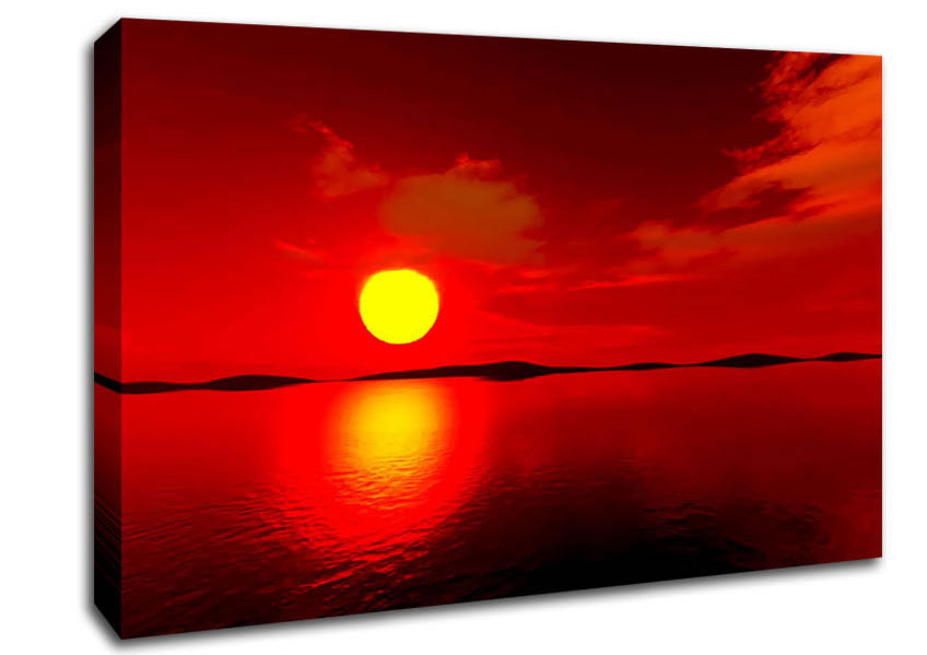 Red Sunblaze Reflection Canvas Print handmade in the UK. Stretched over a 2 inch thick wooden box frame, ready to hang on your wall.