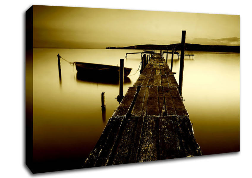 Rustic Ocean Jetty Sepia Canvas Print handmade in the UK. Stretched over a 2 inch thick wooden box frame, ready to hang on your wall.