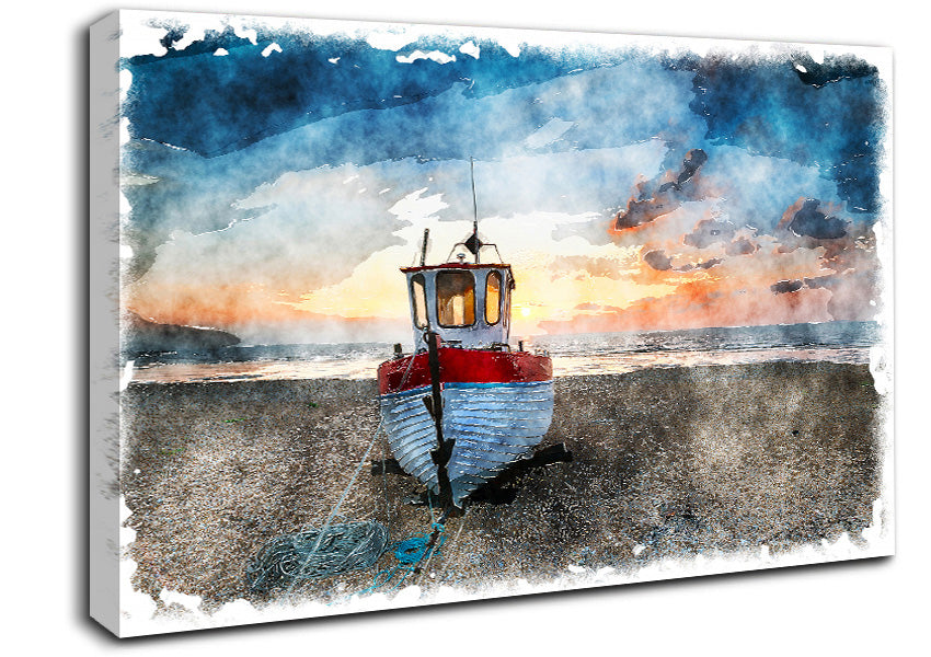 Sailboat Shores Canvas Print handmade in the UK. Stretched over a 2 inch thick wooden box frame, ready to hang on your wall.