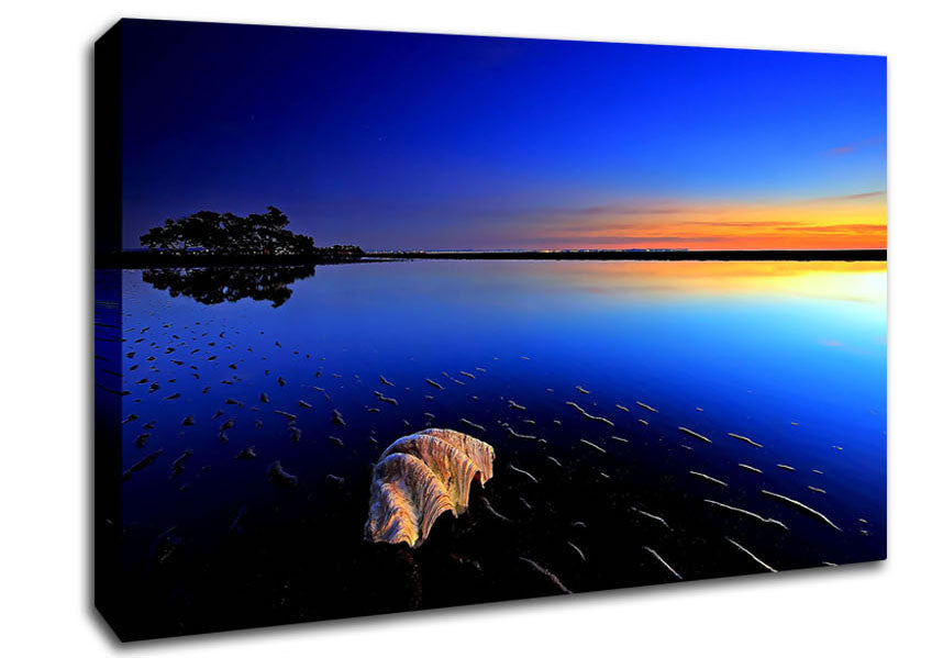 Shell On The Deep Blue Ocean Canvas Print handmade in the UK. Stretched over a 2 inch thick wooden box frame, ready to hang on your wall.