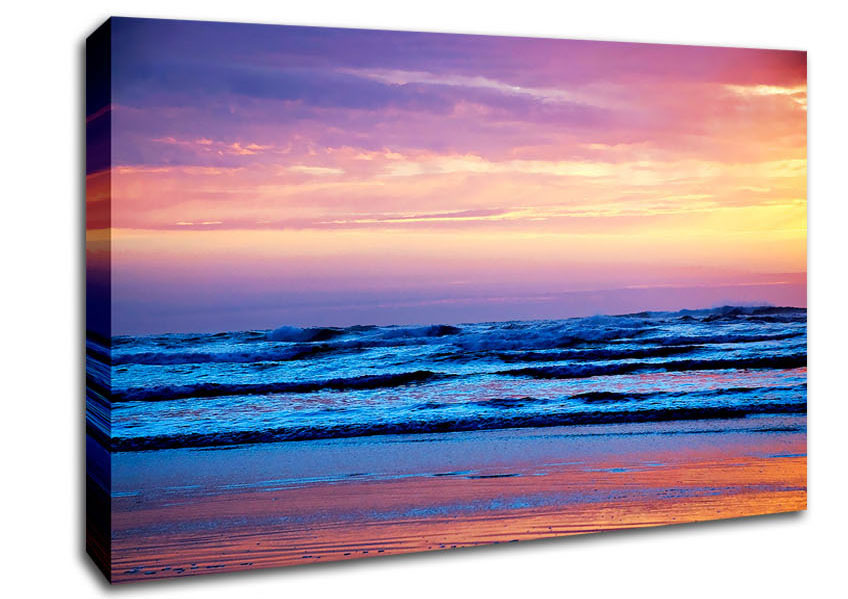 Stunning Blue Ocean Shores Canvas Print handmade in the UK. Stretched over a 2 inch thick wooden box frame, ready to hang on your wall.