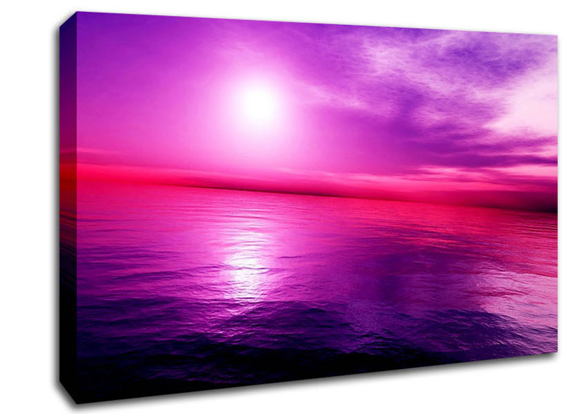 Stunning Lilac Pink Ocean Reflections Canvas Print handmade in the UK. Stretched over a 2 inch thick wooden box frame, ready to hang on your wall.