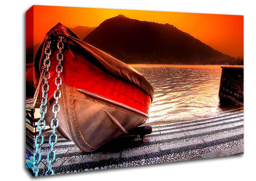 Stunning Paradise Fishing Boat Canvas Print handmade in the UK. Stretched over a 2 inch thick wooden box frame, ready to hang on your wall.