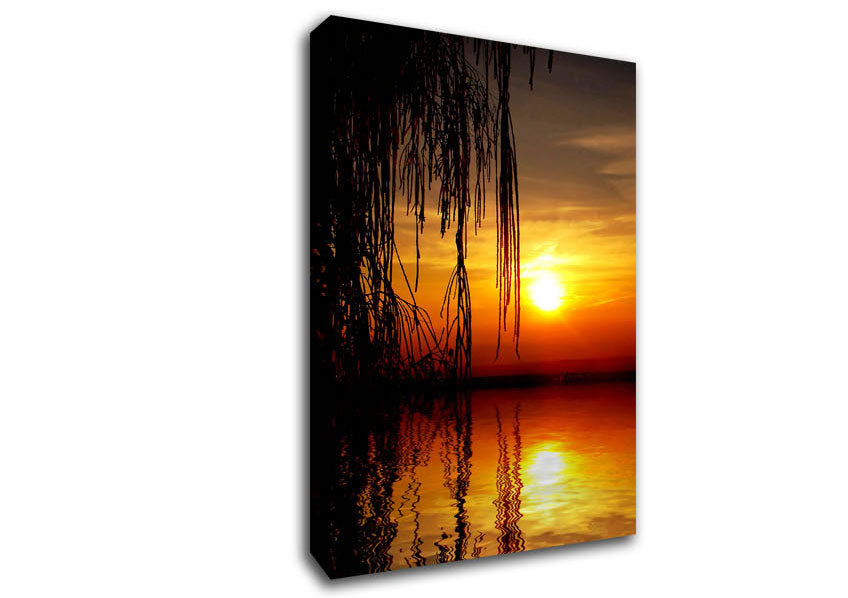 Sun Split Lake Canvas Print handmade in the UK. Stretched over a 2 inch thick wooden box frame, ready to hang on your wall.