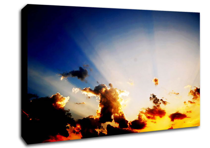 Sunrays Of The Golden Cloud Canvas Print handmade in the UK. Stretched over a 2 inch thick wooden box frame, ready to hang on your wall.