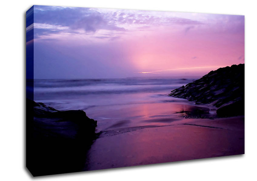 Sunset At Aberavon Beach Canvas Print handmade in the UK. Stretched over a 2 inch thick wooden box frame, ready to hang on your wall.