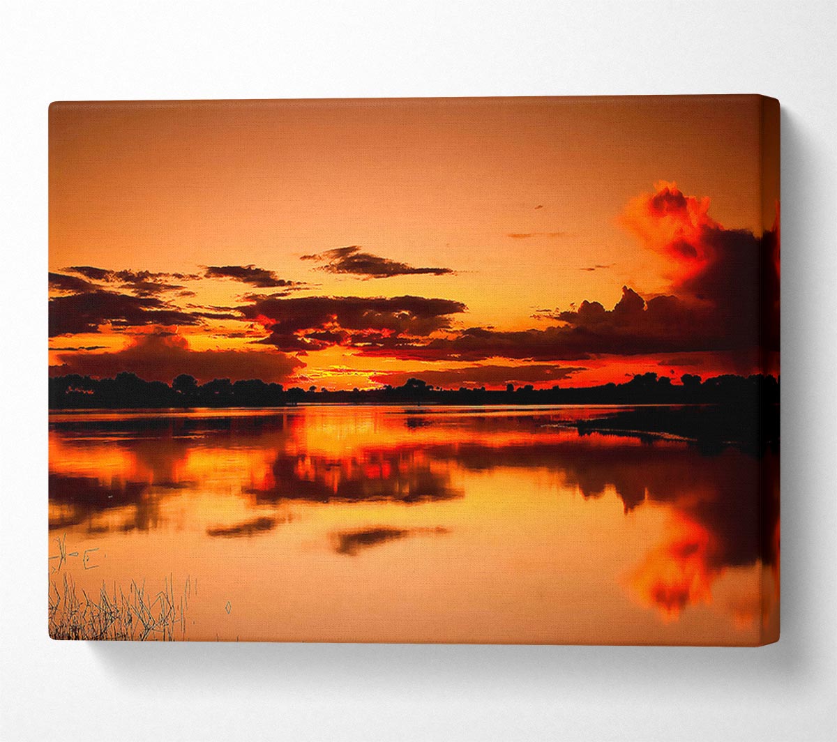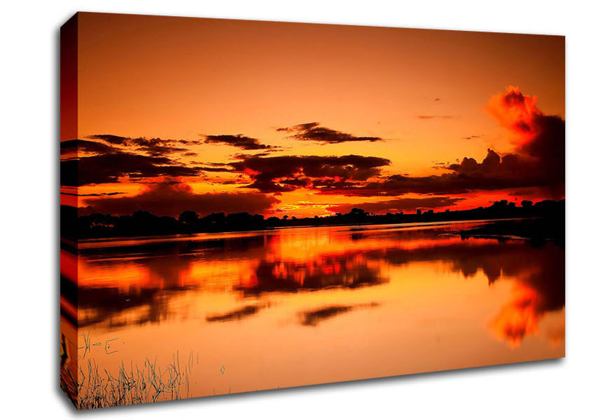 Sunset Cloud Reflection Canvas Print handmade in the UK. Stretched over a 2 inch thick wooden box frame, ready to hang on your wall.