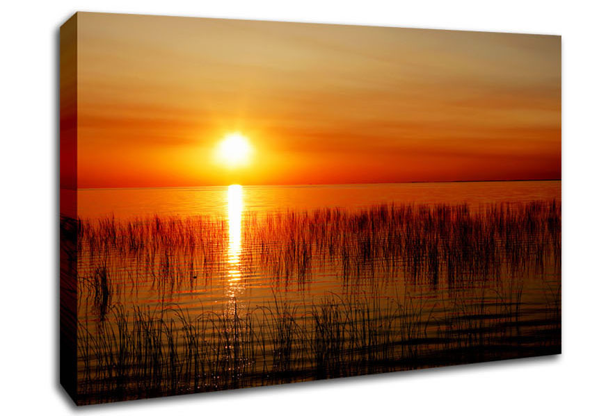 Sunset Over The Oceans Reeds Canvas Print handmade in the UK. Stretched over a 2 inch thick wooden box frame, ready to hang on your wall.