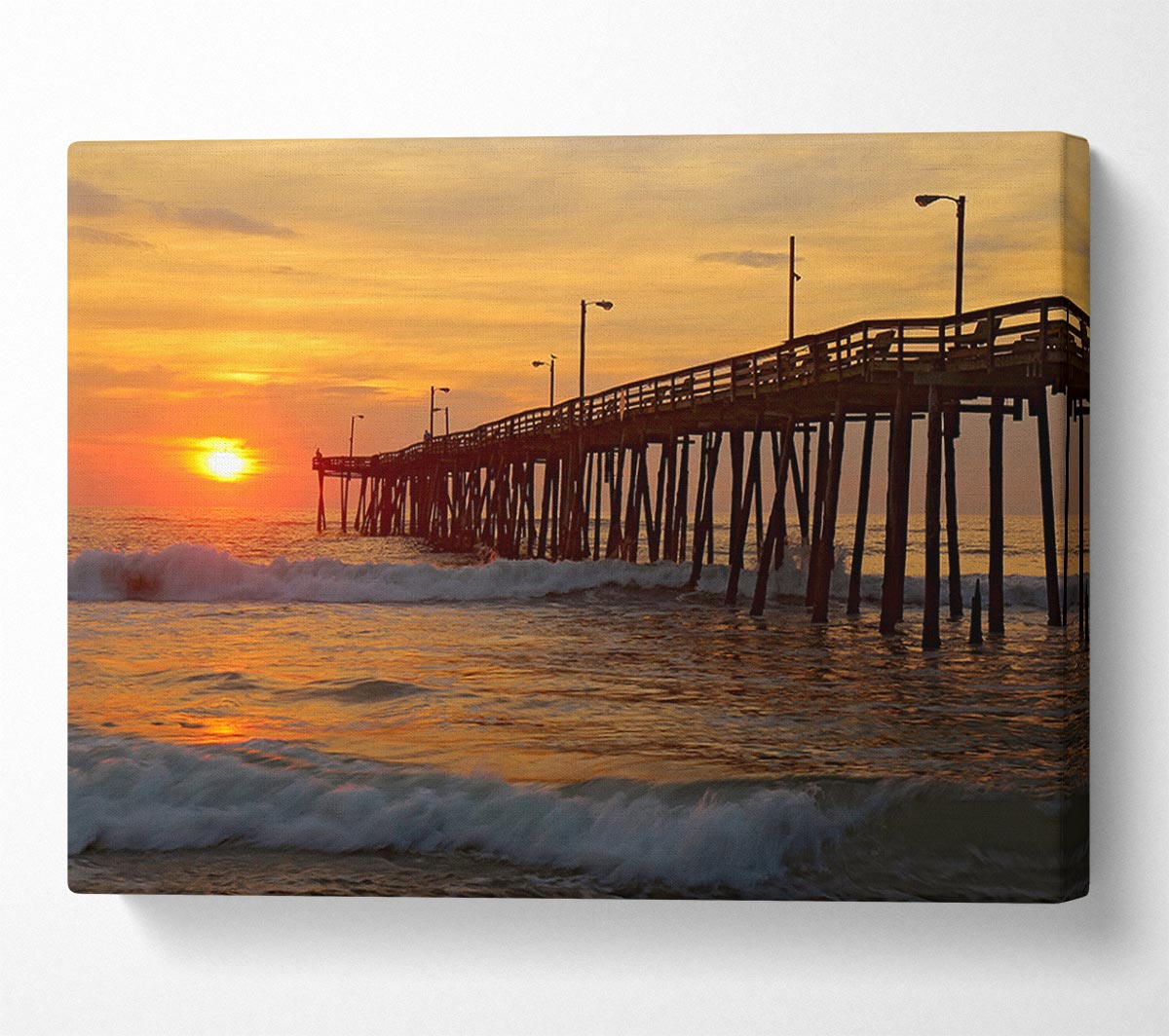 Sunset Waves Canvas Print handmade in the UK. Stretched over a 2 inch thick wooden box frame, ready to hang on your wall.