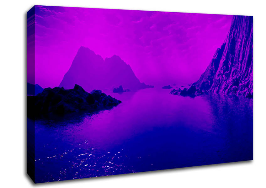 Surreal Pink Ocean Calm Canvas Print handmade in the UK. Stretched over a 2 inch thick wooden box frame, ready to hang on your wall.