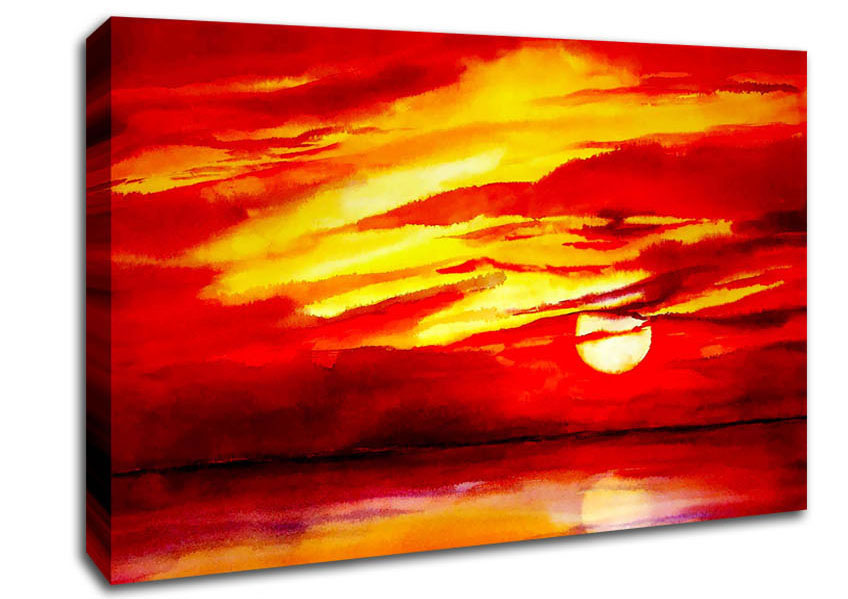 Surreal Red Ocean Skies Canvas Print handmade in the UK. Stretched over a 2 inch thick wooden box frame, ready to hang on your wall.