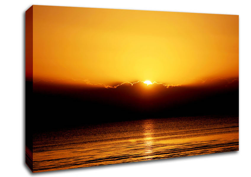 The Last Glimmer Of The Orange Ocean Sun Canvas Print handmade in the UK. Stretched over a 2 inch thick wooden box frame, ready to hang on your wall.