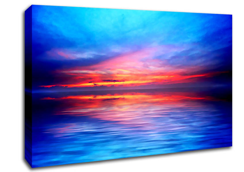 The Oceans Mirror Sky Canvas Print handmade in the UK. Stretched over a 2 inch thick wooden box frame, ready to hang on your wall.