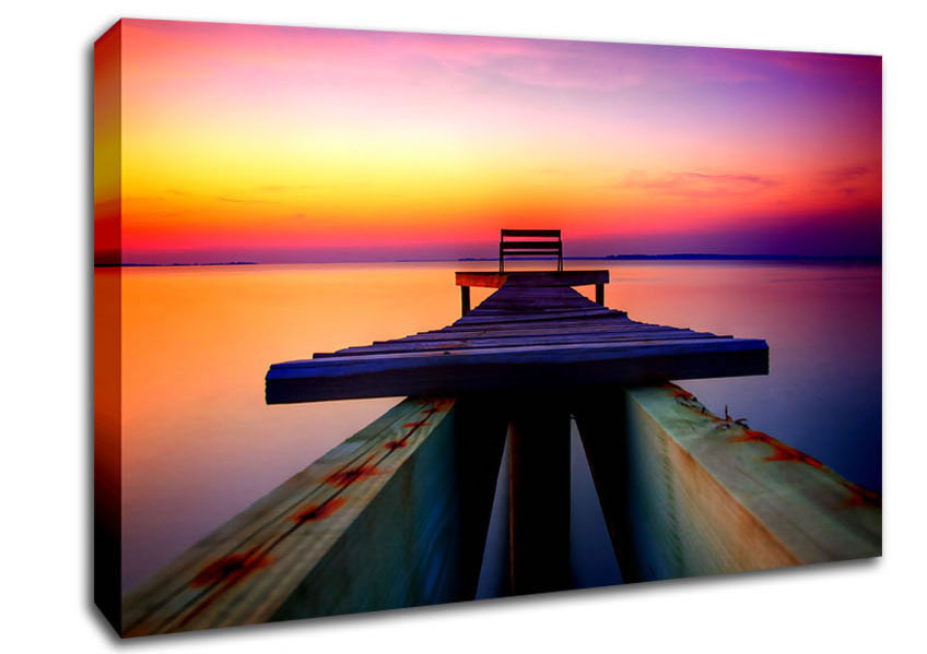 The Perfect Sunset Dock Canvas Print handmade in the UK. Stretched over a 2 inch thick wooden box frame, ready to hang on your wall.
