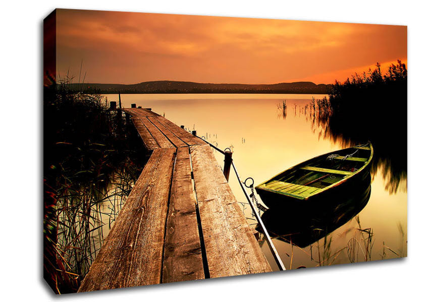 Tranqil Lake Mooring Canvas Print handmade in the UK. Stretched over a 2 inch thick wooden box frame, ready to hang on your wall.