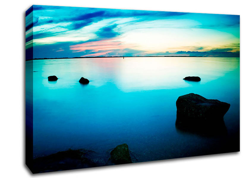 Turquoise Serenity Canvas Print handmade in the UK. Stretched over a 2 inch thick wooden box frame, ready to hang on your wall.