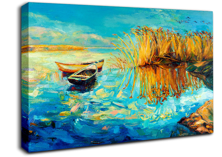Twin Sailboat Reflections Canvas Print handmade in the UK. Stretched over a 2 inch thick wooden box frame, ready to hang on your wall.