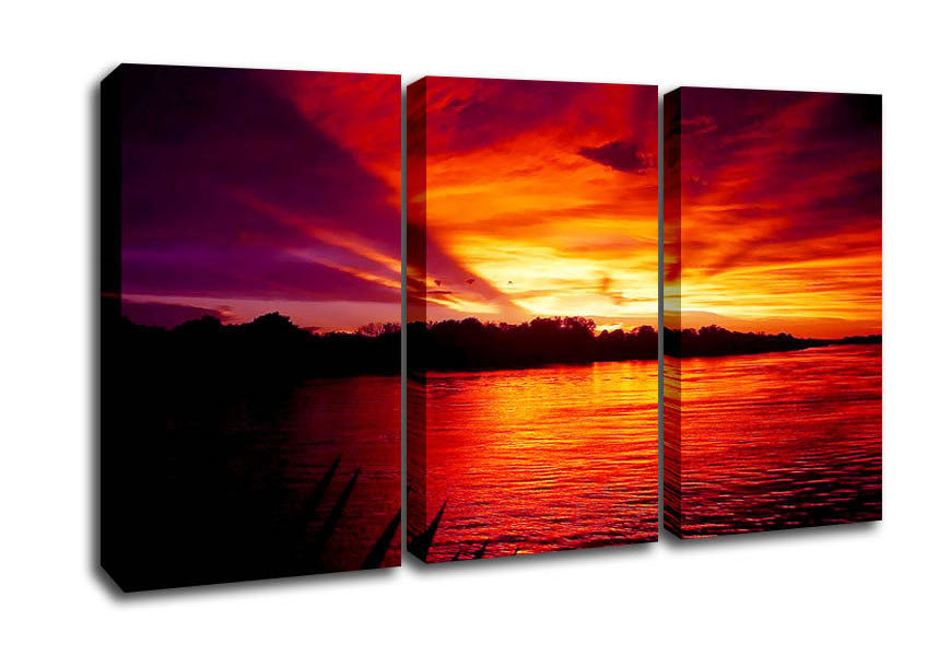 Red Mountain Lake 02 3 Panel Canvas Print handmade in the UK. Stretched over a 2 inch thick wooden box frame, ready to hang on your wall.