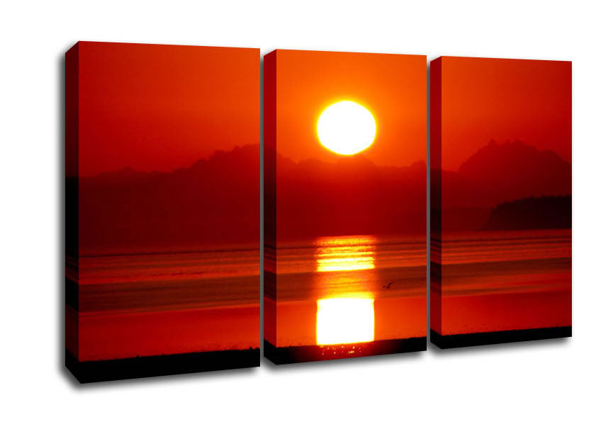 Sunrise Over North Cascades 3 Panel Canvas Print handmade in the UK. Stretched over a 2 inch thick wooden box frame, ready to hang on your wall.