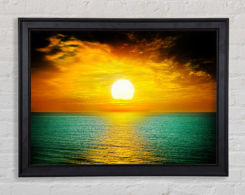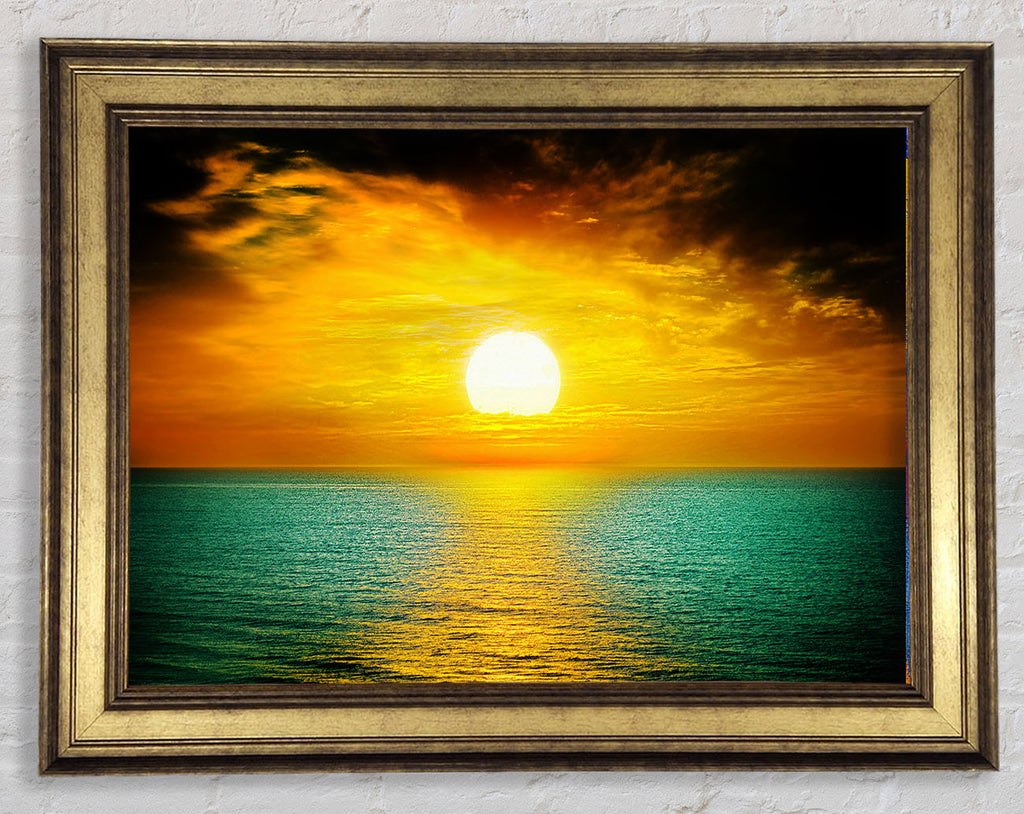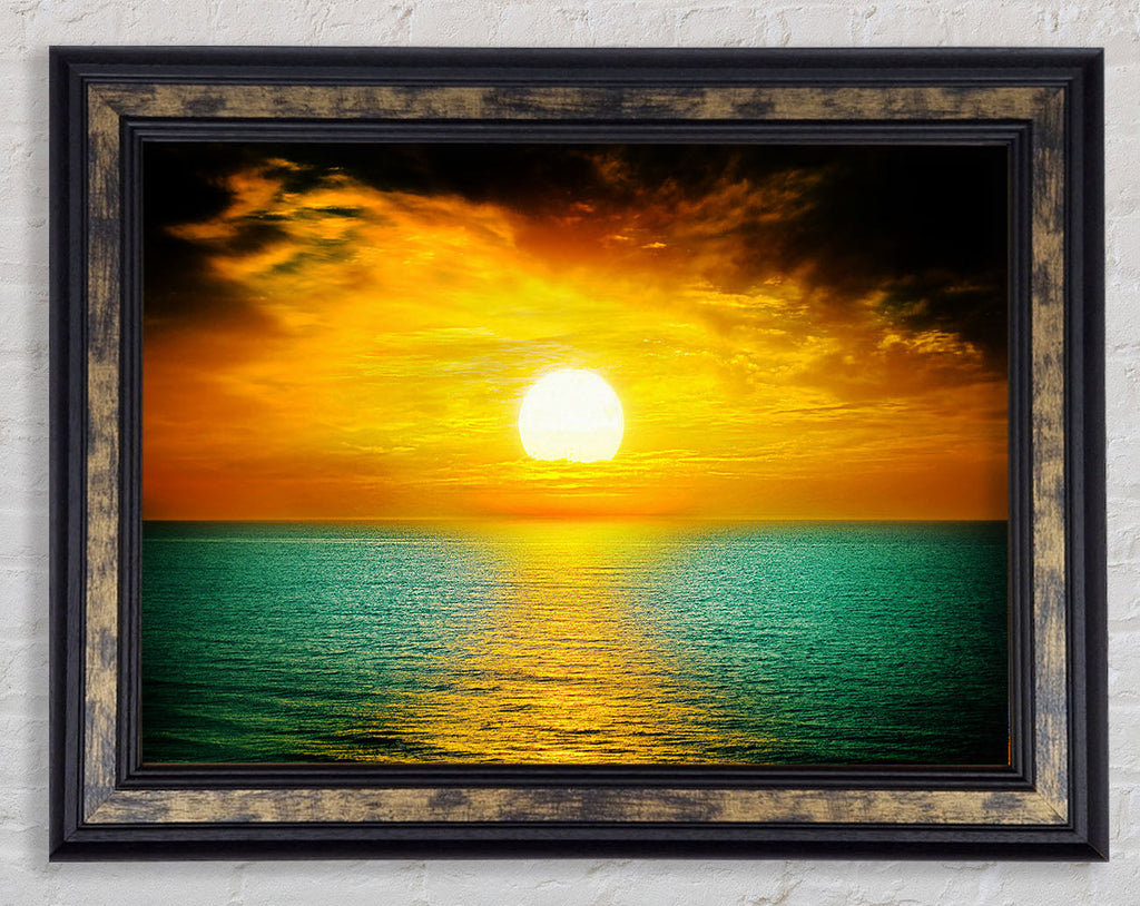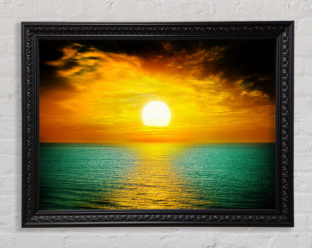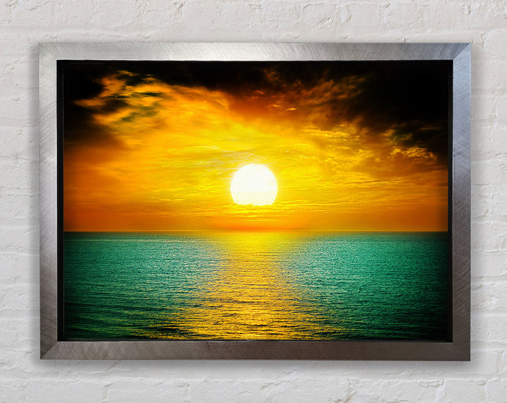 Orange Sun Reflections On The Green Ocean