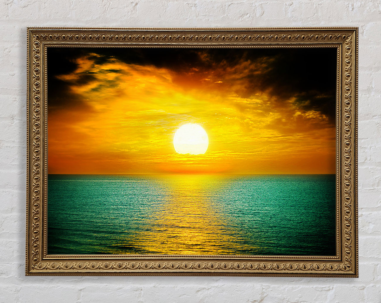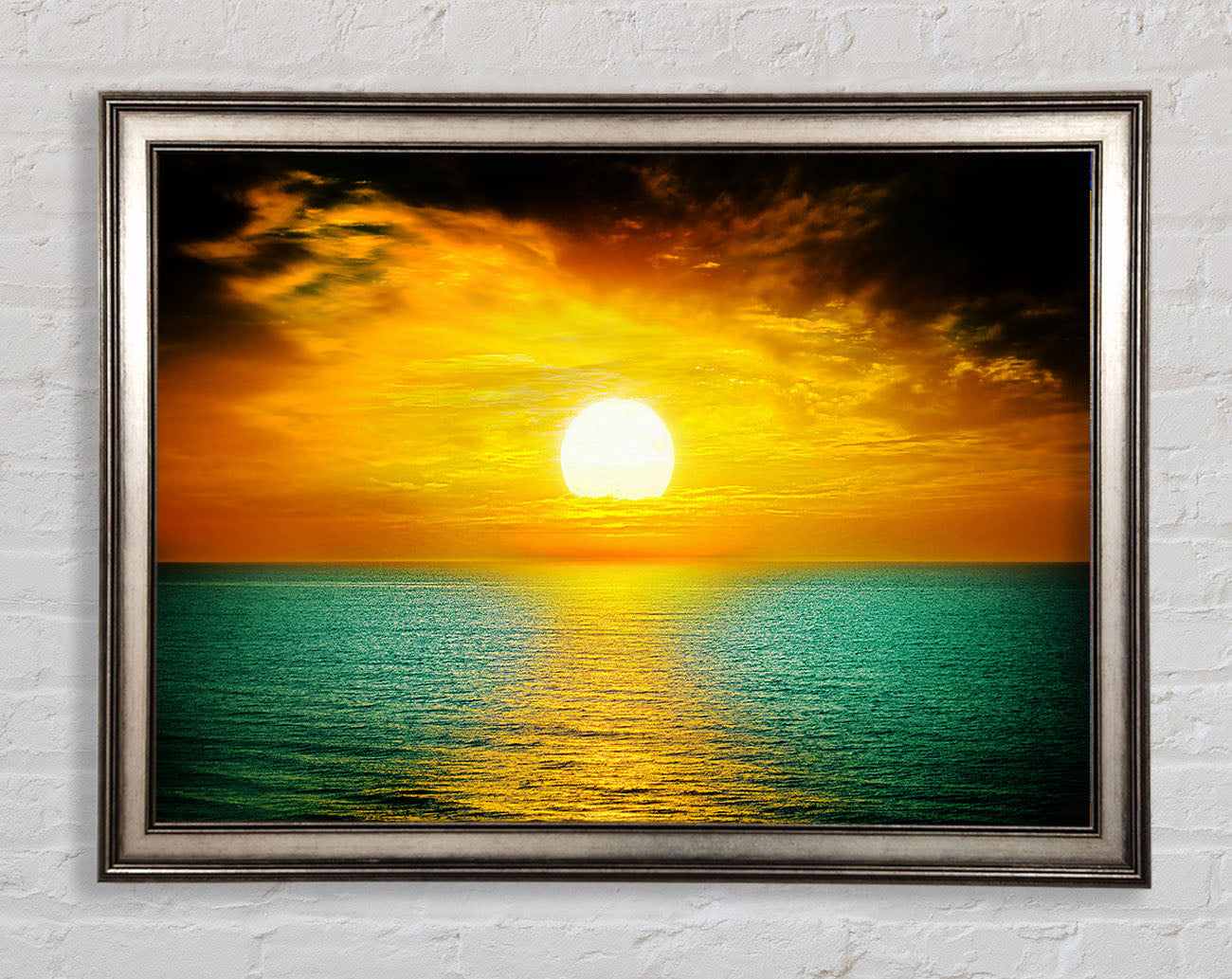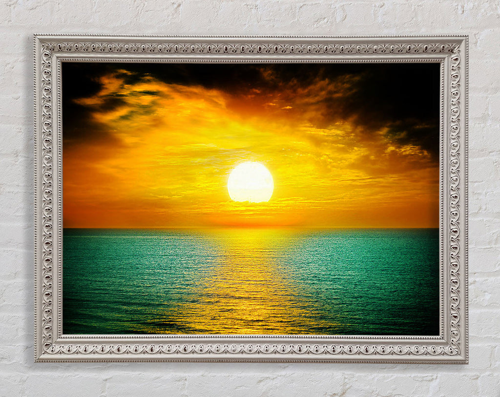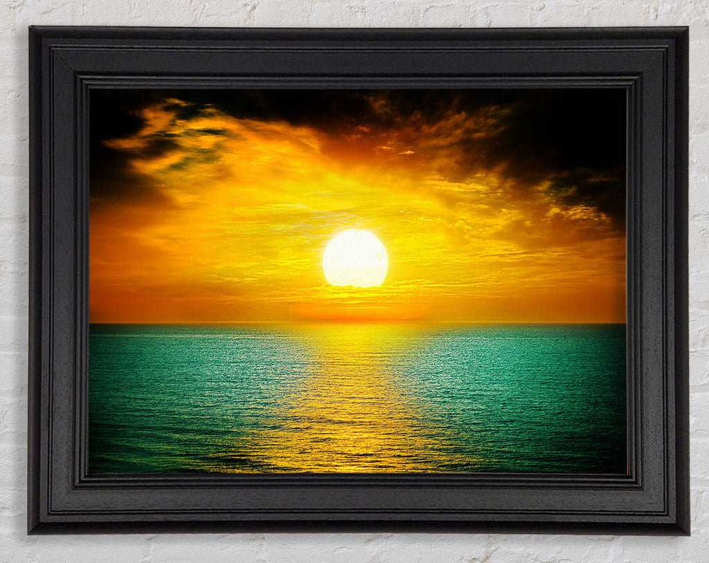 Orange Sun Reflections On The Green Ocean