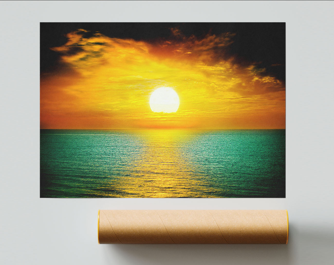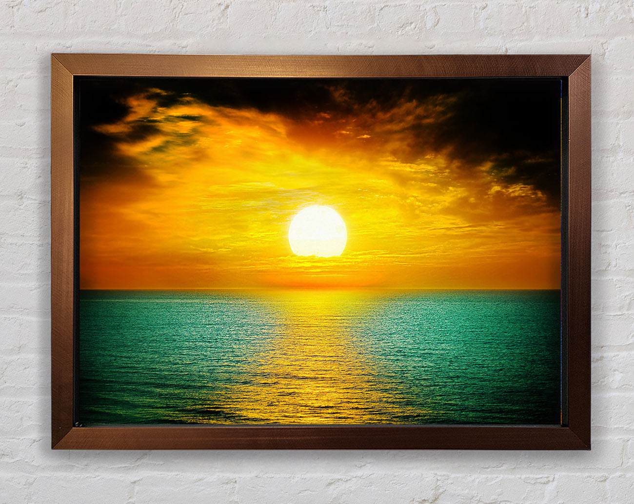 Title: Orange Sun Reflections On The Green Ocean
