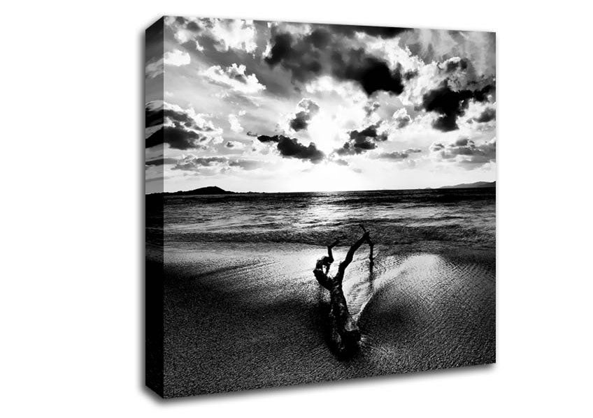 Driftwood B n W Square Canvas Print handmade in the UK. Stretched over a 2 inch thick wooden box frame, ready to hang on your wall.