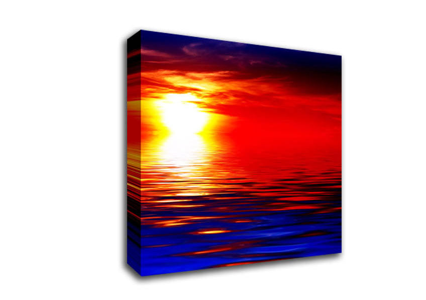 Electric Blue Ocean Sunset Square Canvas Print handmade in the UK. Stretched over a 2 inch thick wooden box frame, ready to hang on your wall.