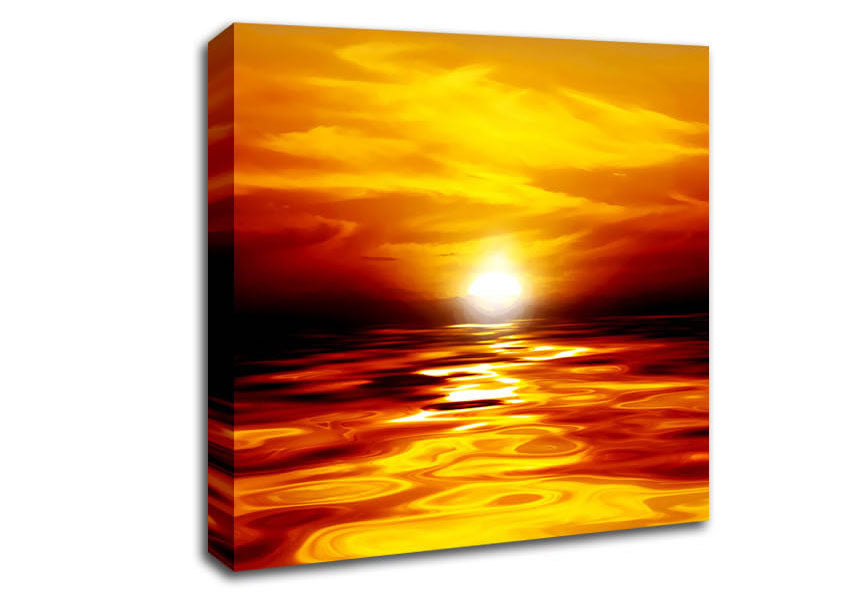 Lava Ocean Sunset Yellow Square Canvas Print handmade in the UK. Stretched over a 2 inch thick wooden box frame, ready to hang on your wall.