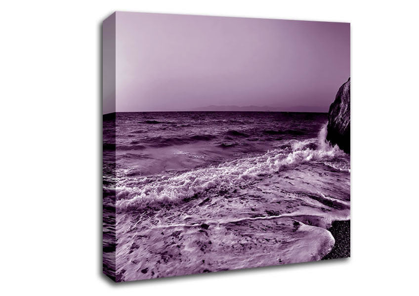 Lilac Ocean Sun Square Canvas Print handmade in the UK. Stretched over a 2 inch thick wooden box frame, ready to hang on your wall.