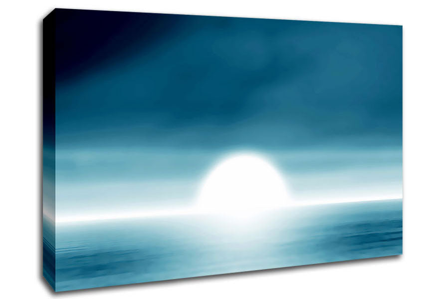Abstact Sun Blue Canvas Print handmade in the UK. Stretched over a 2 inch thick wooden box frame, ready to hang on your wall.