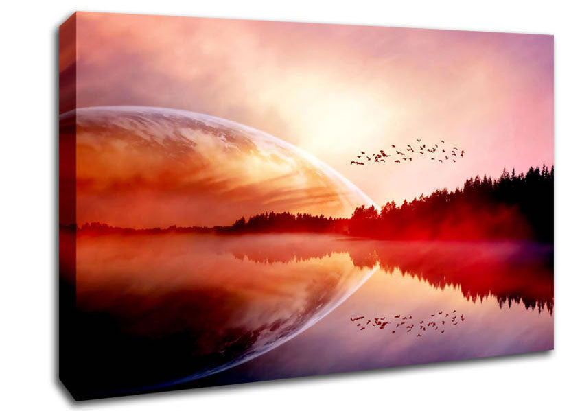 Amazing Sunrise Lake Canvas Print handmade in the UK. Stretched over a 2 inch thick wooden box frame, ready to hang on your wall.