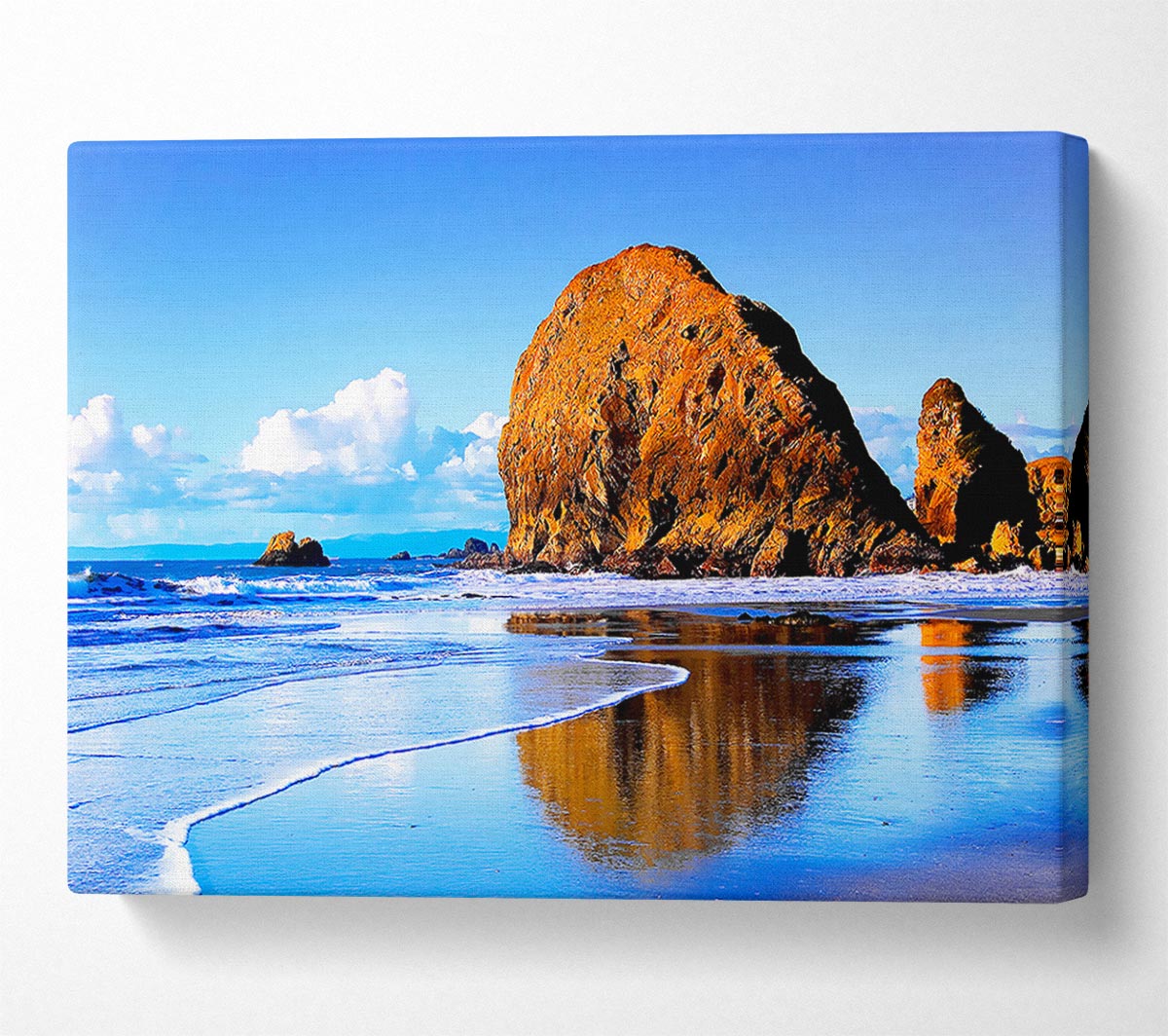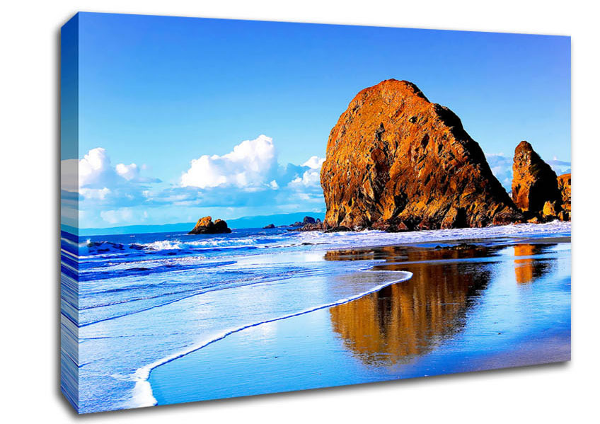 Beach Rocks Canvas Print handmade in the UK. Stretched over a 2 inch thick wooden box frame, ready to hang on your wall.