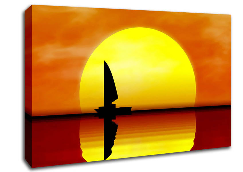 Boat Sailing In The Sunset Canvas Print handmade in the UK. Stretched over a 2 inch thick wooden box frame, ready to hang on your wall.