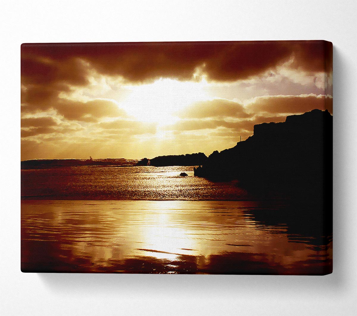 Chocolate Sunset Reflections Canvas Print handmade in the UK. Stretched over a 2 inch thick wooden box frame, ready to hang on your wall.