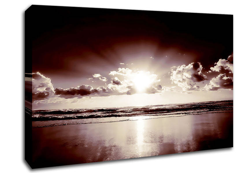 Mauve Ocean Sunrise Canvas Print handmade in the UK. Stretched over a 2 inch thick wooden box frame, ready to hang on your wall.